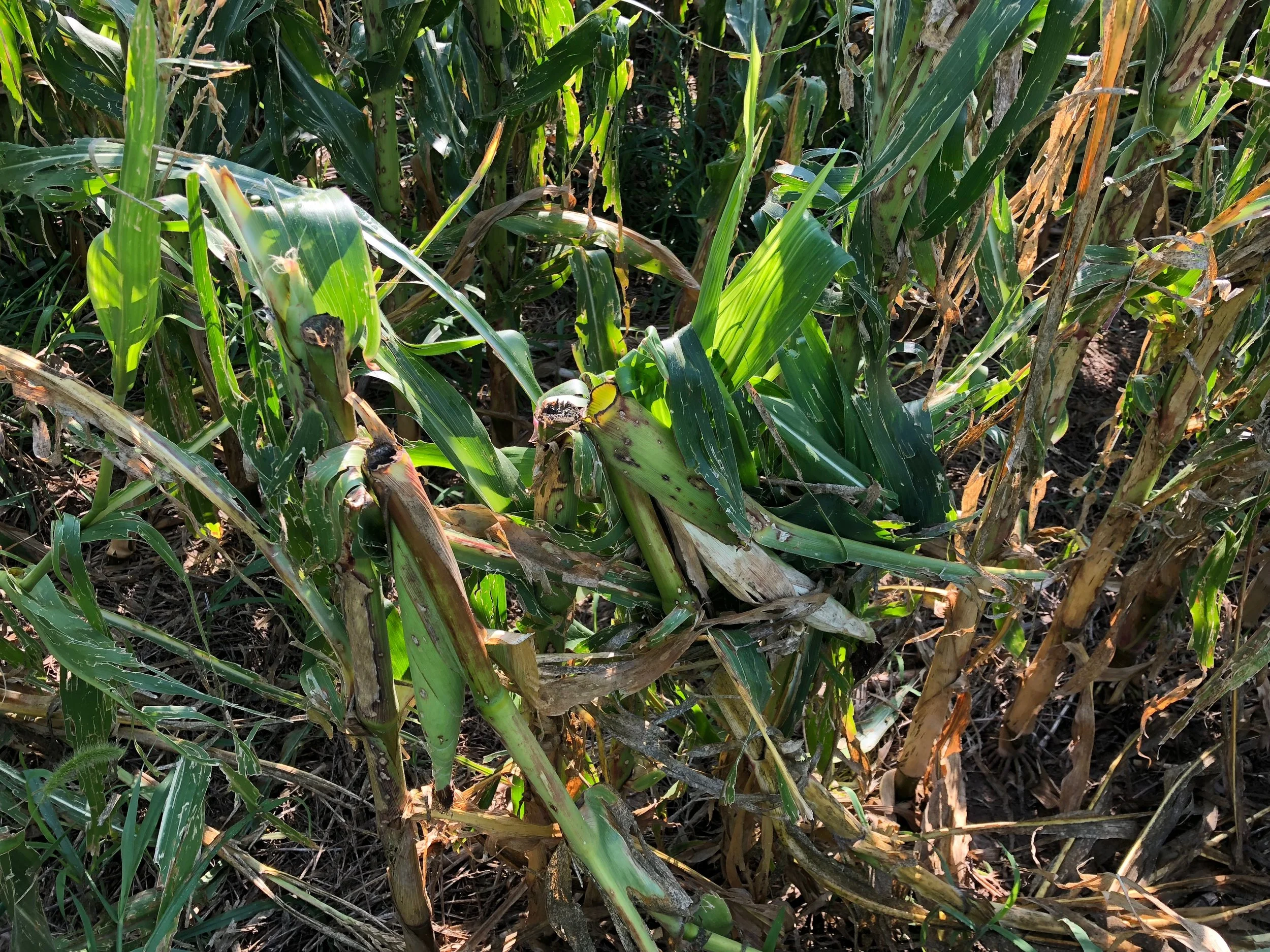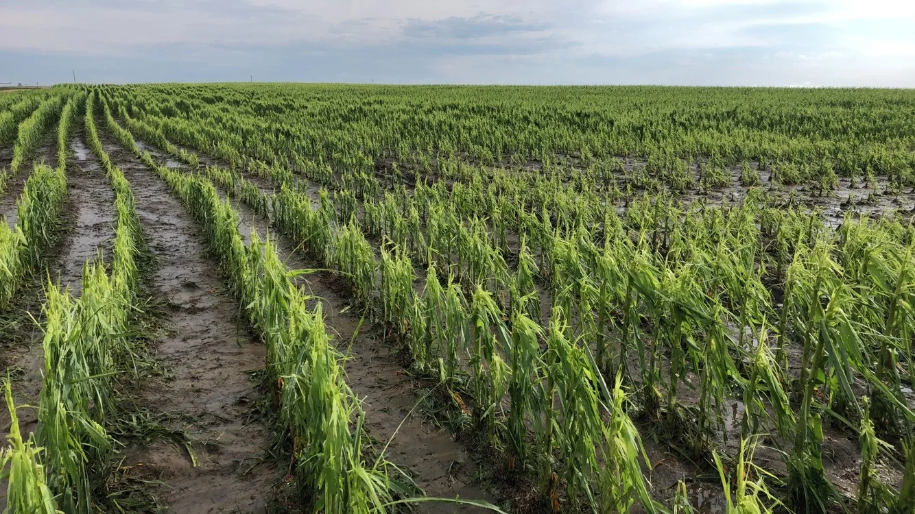 Our insured had extreme hail and wind damage to his corn from the June 30, 2018 storm.